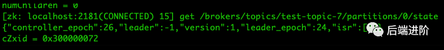 3、重启 broker0,发现分区的 lastOffset 已经变成了 broker2 的副本的 lastOffset: