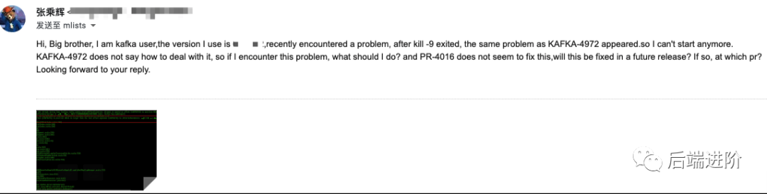 我也尝试发送邮件给 Kafka 维护者,期待大佬的回应: