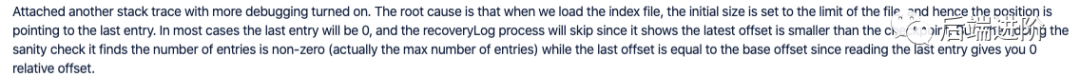 这里我也需要吐槽一下,如果出现这个 bug,意味着这个问题除非是将这些故障的日志文件和索引文件删除,否则该节点永远启动不了,这也太暴力了吧?