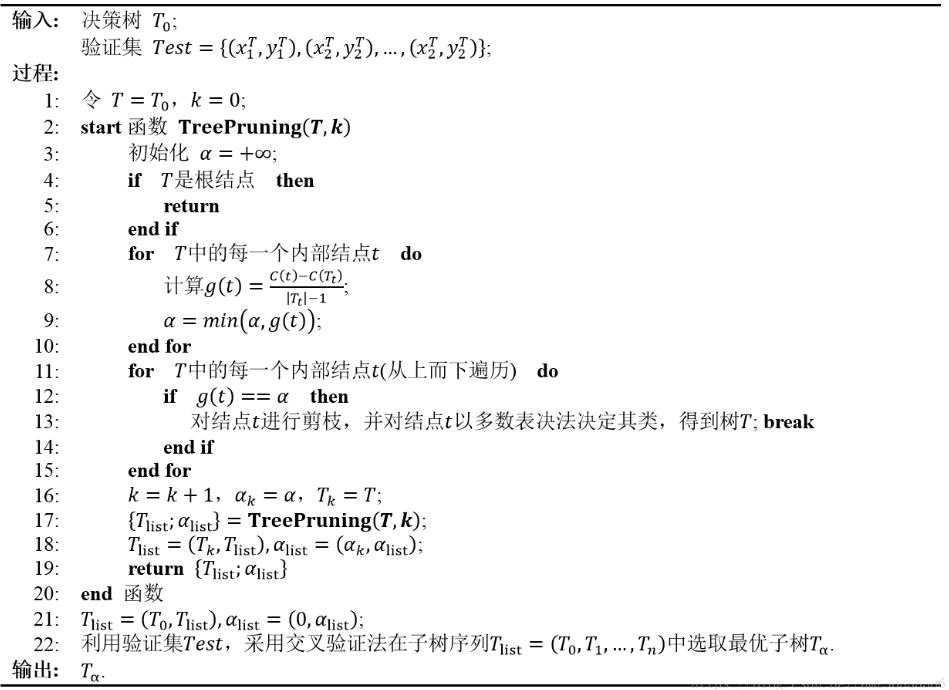 李航老师《统计学习方法》中具体介绍了 CART 剪枝算法的步骤流程。