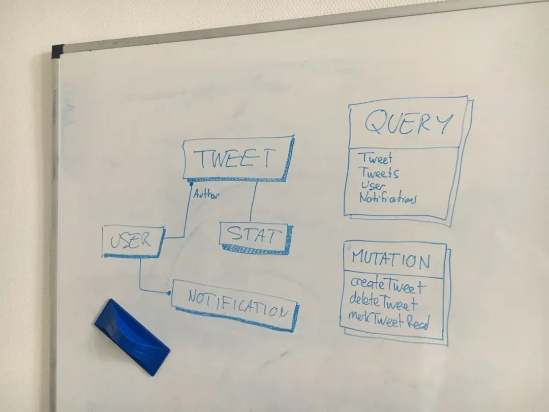当我开发一个GraphQL服务时,我总会从在白板上设计模型开始,而不是上来就写代码。我会和产品和前端开发团队一起来讨论需要提供哪些数据类型,查询或更新操作。如果你了解领域驱动设计方法[4],你会很熟悉这个流程。前端开发团队在拿到服务端返回的数据结构之前是没有办法开始编码的。所以我们需要先对API达成一致。