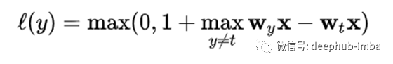 Hinge损失函数:t→目标变量,w→模型参数,x→输入变量
