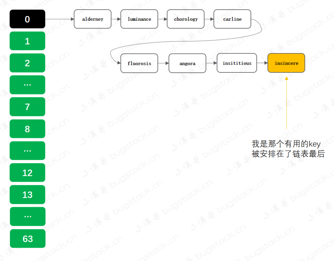 其次,所有的 key都是刻意选出来的,因为他们在HashMap计算下标时,下标值都为0,idx =(size - 1) & (key.hashCode() ^ (key.hashCode() >>> 16)),这样就能让所有key都散列到同一个位置进行碰撞。 而且单词insincere的意思是;不诚恳的、不真诚的! -