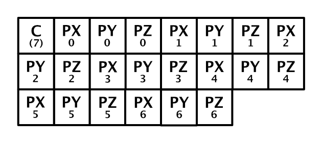 除了编写多少个多维数据集外,我们还必须存储每个多维数据集的转换数据。我们通过遍历对象并写入它们的数据来做到这一点,一次写入一个数字。现在,我们将只限于他们的职位。因此,请按此顺序写入每个多维数据集位置的X,Y和Z分量。