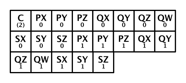 除此之外,还添加一些方法来写一个Quaternion-用于旋转-和一个Vector3。这些方法必须编写其参数的所有组件。对于四元数,这是四个组成部分。