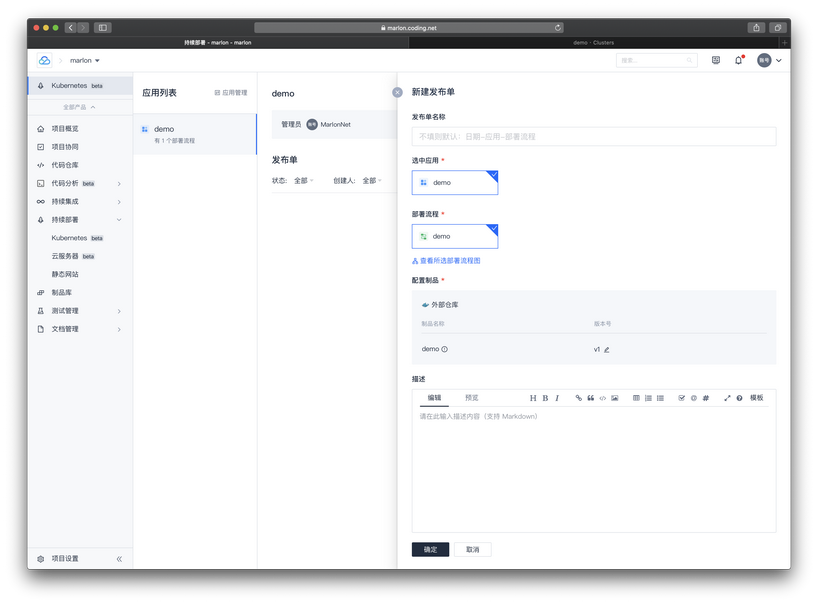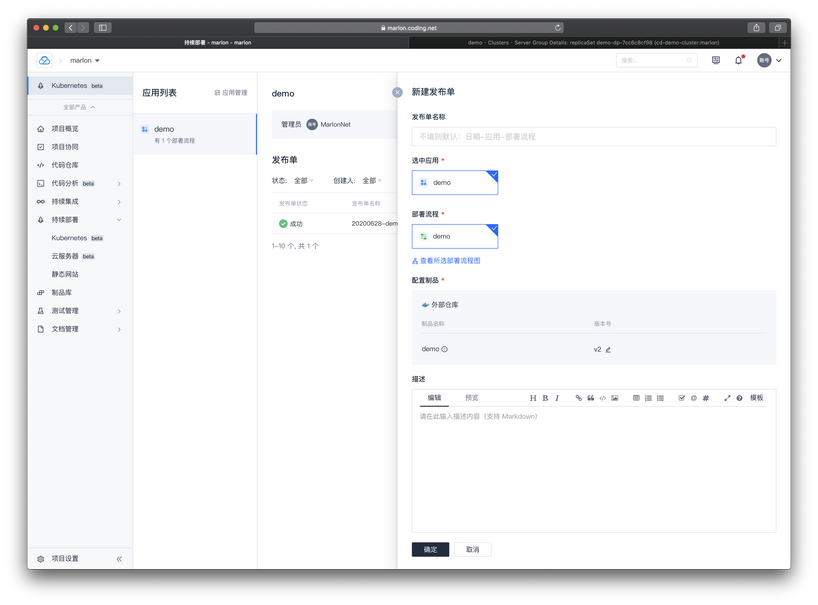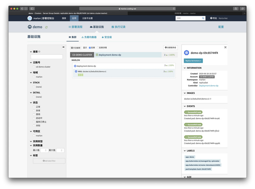 等待一小段时间后,就可以在部署控制台中看到发布的资源了。