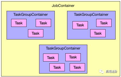 一组 Task 的集合,根据 DataX 的公平分配策略,公平地分配 Task 到对应的 TaskGroup 中。一个 TaskGroup 对应一个 TaskGroupContainer,负责执行一组 Task。