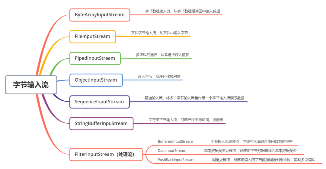处理流:处理流是对节点流的封装,使用外层的处理流读写数据,本质上是利用节点流的功能,外层的处理流可以提供额外的功能。处理流的基类都是以 Filter开头。