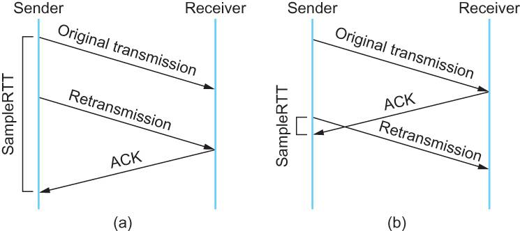 从图中就可以看到,一个时间算长了,一个时间算短了,这有点难,因为你不知道这个 ACK 到底是回复谁的。