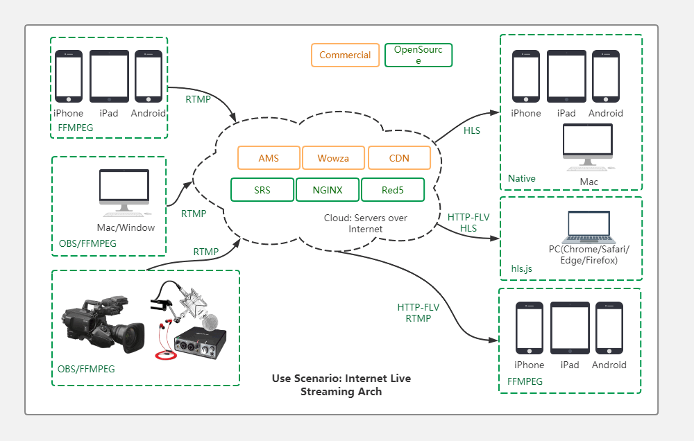 1)SRS提供了丰富的接入方案将RTMP流接入SRS, 包括推送RTMP到SRS、推送RTSP/UDP/FLV到SRS、拉取流到SRS