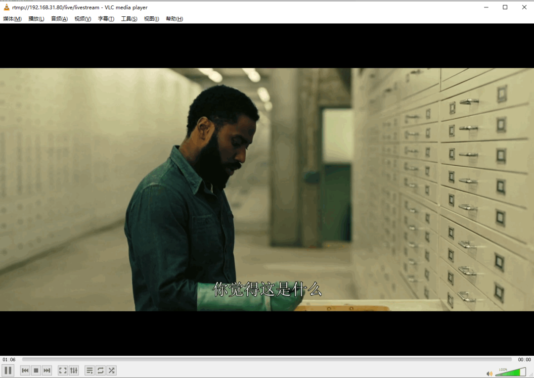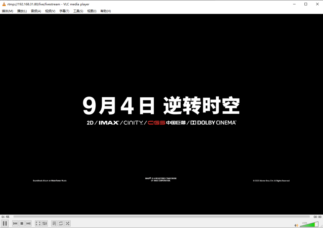 上传TenetTrails.mp4文件到服务器,ffmpeg -re -i /data/TenetTrails.mp4 -vcodec copy -acodec copy -f flv -y rtmp://192.168.31.80/live/livestream进行推流