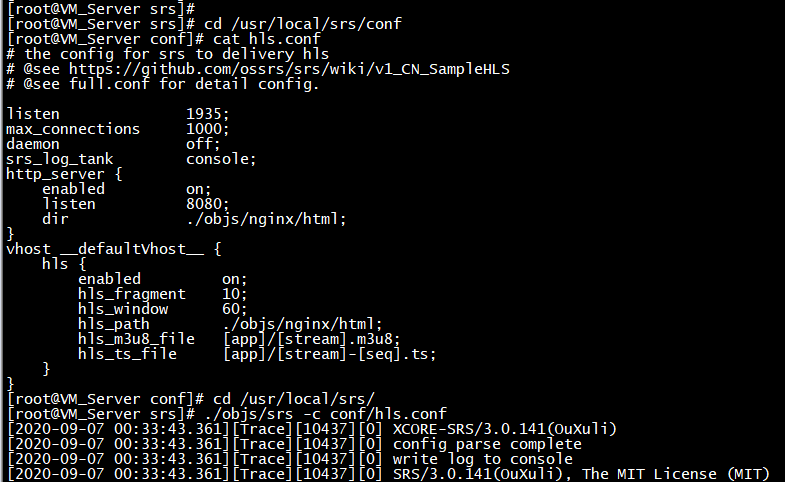 当然你也可以将hls配置文件添加到srs.conf 接下来使用FFMPEG命令推流