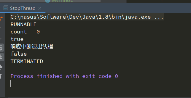 运行结果:跟 RUNNABLE 一样,能响应中断。