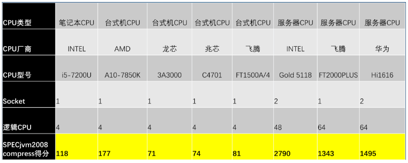 通过上图大家可以看到国产CPU与国外CPU之间的差距,性能基本只有Intel中档CPU性能的一半左右,国产CPU还有很长的路要走。