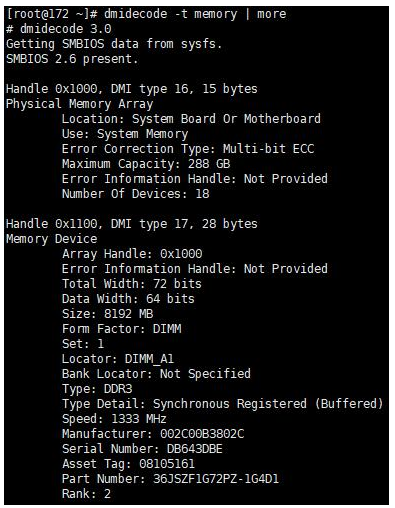 我们可以通过 dmidecode -t memory | more指令查看内存信息,效果如下: