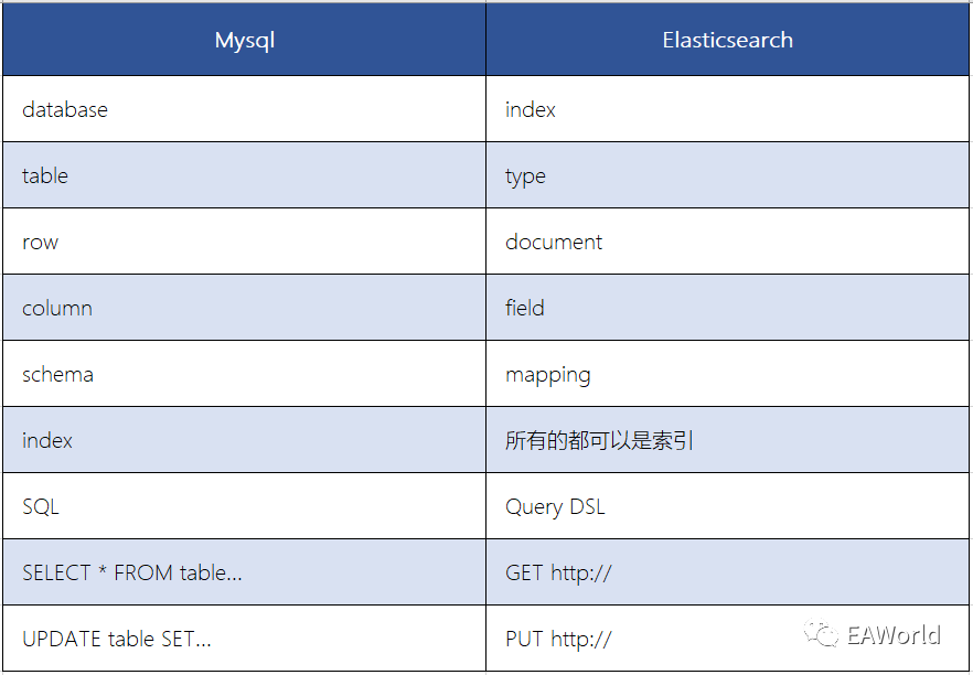 这里类比关系型数据库的话,一个索引(Index)就相当于一张表,一个文档(Document)就相当于一条记录。