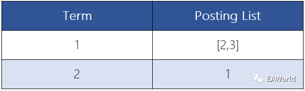 4)Posting List(倒排列表):倒排列表记录了出现过某个单词的所有文档的文档列表及单词在该文档中出现的位置信息,每条记录称为一个倒排项(Posting)。根据倒排列表,即可获知哪些文档包含某个单词 ;