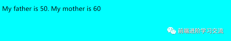 <html lang="en"><head><meta charset="UTF-8"><title>项目</title></head><body style="background-color: aqua;"><p id="demo"></p><script>function Person(first, last, age, eye) {this.firstName = first;this.lastName = last;this.age = age;this.eyeColor = eye;}var myFather = new Person("John", "Doe", 50, "blue");var myMother = new Person("Sall", "Rally", 60, "green");document.getElementById("demo").innerHTML ="My father is " + myFather.age + ". My mother is " + myMother.age;</script></body></html>