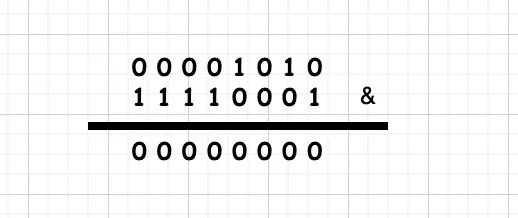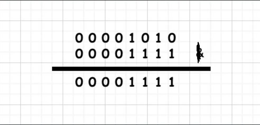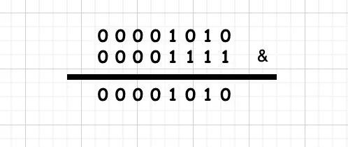 按位进行相与,相同为1则为1,否则为0,最终算的结果为00001010 即10