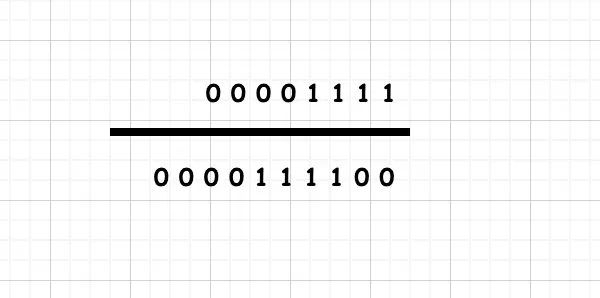 二进制左移2位,左边抹掉,符号位不变,右边填0,得到00111100