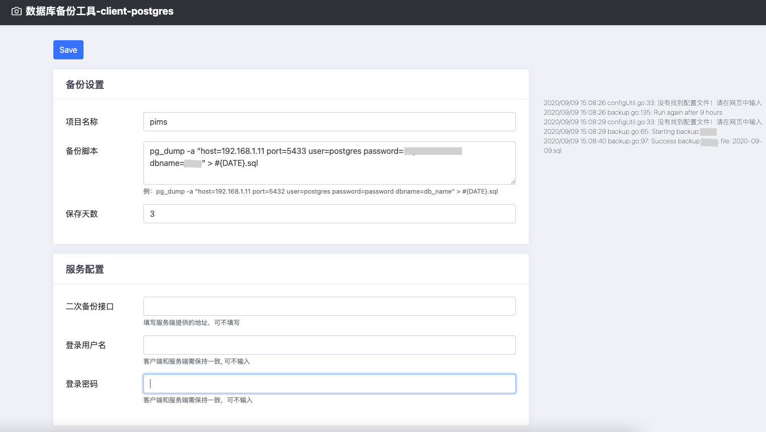 - 运行docker容器。参考https://github.com/jeessy2/backup-db/releases