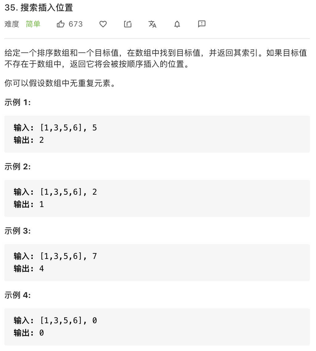 这次来写一下 LeetCode 的第 35 题,搜索插入位置。