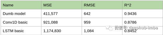 对比1D卷积模型、LSTM、基线模型的预测损失如下: