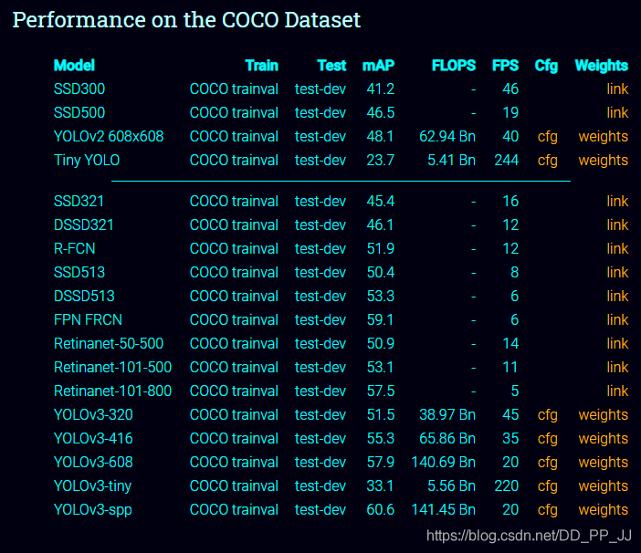 再来看一下官方提供的yolov3和yolov3-spp在COCO数据集上的对比: