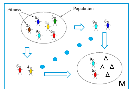 锦标赛选择法( tournament selection):每次随机选取几个个体之中适应度最高的一个个体遗传到下一代群体中,重复M次. -