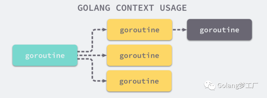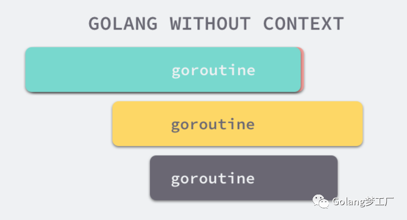 每一个 Context 都会从最顶层的 Goroutine 一层一层传递到最下层,这也是 Golang 中上下文最常见的使用方式,如果没有 Context,当上层执行的操作出现错误时,下层其实不会收到错误而是会继续执行下去。