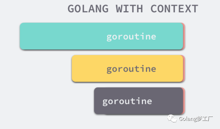 当最上层的 Goroutine 因为某些原因执行失败时,下两层的 Goroutine 由于没有接收到这个信号所以会继续工作;但是当我们正确地使用 Context 时,就可以在下层及时停掉无用的工作减少额外资源的消耗: