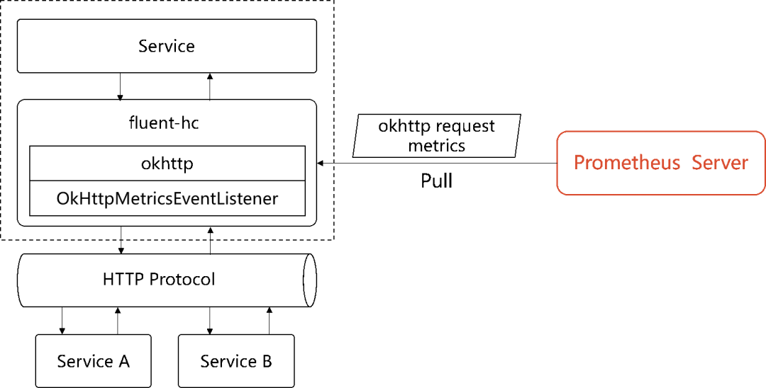 我们最终选择了第二种方案,主要原因是:首先我们的技术方案比较统一,都采用HTTP协议进行服务调用,且使用的HTTP客户端组件(fluent-hc)也是基于Okhttp3进行的二次封装,方便统一修改。其次,Micrometer支持通过SDK的方式自定义监控指标数据的采集,也提供了众多常用的组件埋点方案,Okhttp3即是其中之一,进一步简化了第三方接口的监控数据采集难度。