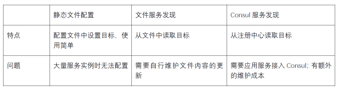 静态配置的方式最为简单,但在实际生产环境中并不可取。容器每时每刻都可能进行着创建和销毁,不可能通过静态配置方式设置监控目标。我们最开始选择了Consul的服务发现,它引入了集中的注册中心,微服务启动时向注册中心注册服务实例,Prometheus便可以从注册中心查询到服务实例作为监控目标。不过,我们最终并没有采用Consul,主要原因有两点,一是微服务接入Consul需要涉及代码改动,虽然改动不大,但大量服务的接入仍有不小的成本;二是还需要再单独部署和维护一套Consul环境,带来新的维护成本。