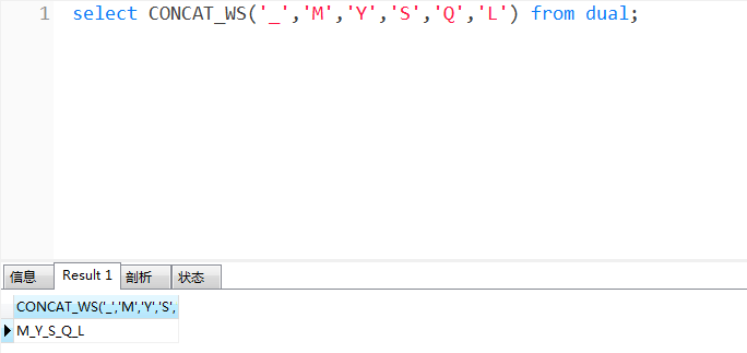 二、concat 是以逗号为默认的分隔符,而 concat_ws 则可以指定分隔符,第一个参数传入分隔符,如以下划线分隔。