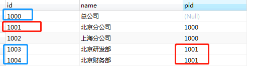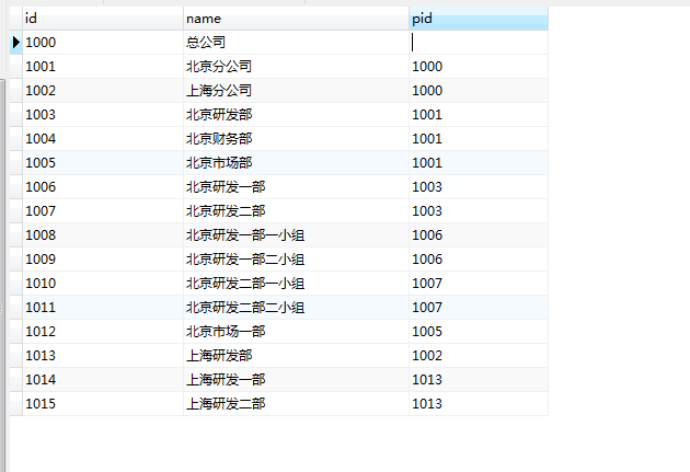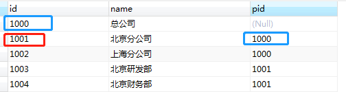 INSERT INTO `dept`(`id`, `name`, `pid`) VALUES ('1001', '北京分公司', '1000');