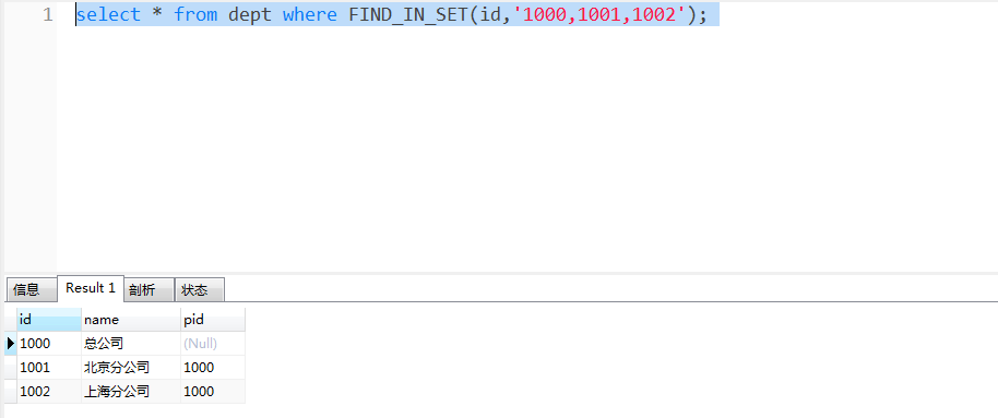 select * from dept where FIND_IN_SET(id,'1000,1001,1002');
