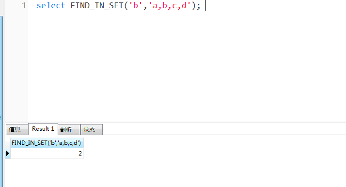 str 代表要查询的字符串 , strlist 是一个以逗号分隔的字符串,如 ('a,b,c')。