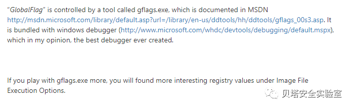 在MSDN的博客上进一步发现GlobalFlag由gflags.exe控制,文章地址: