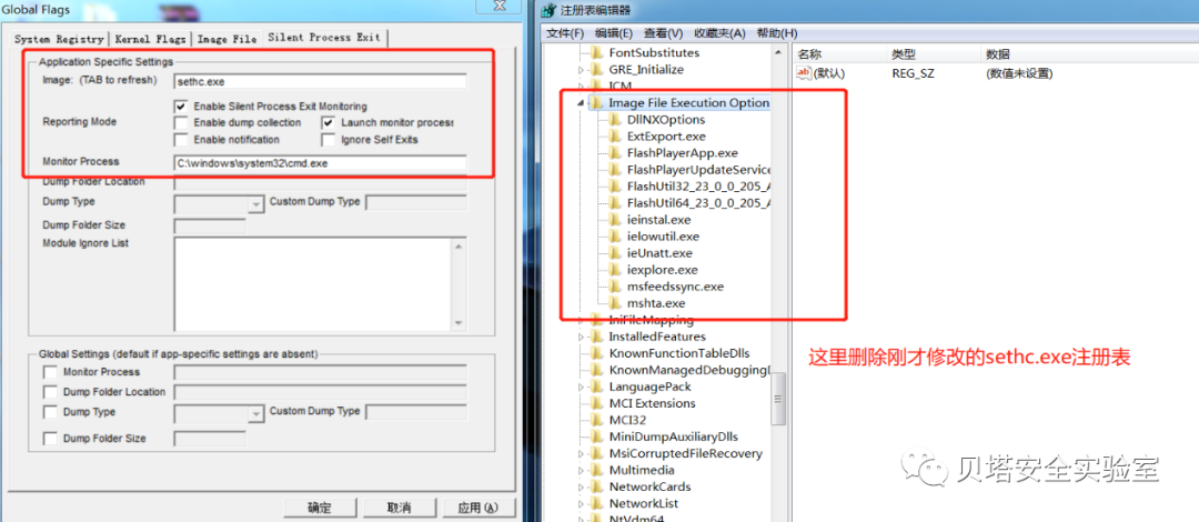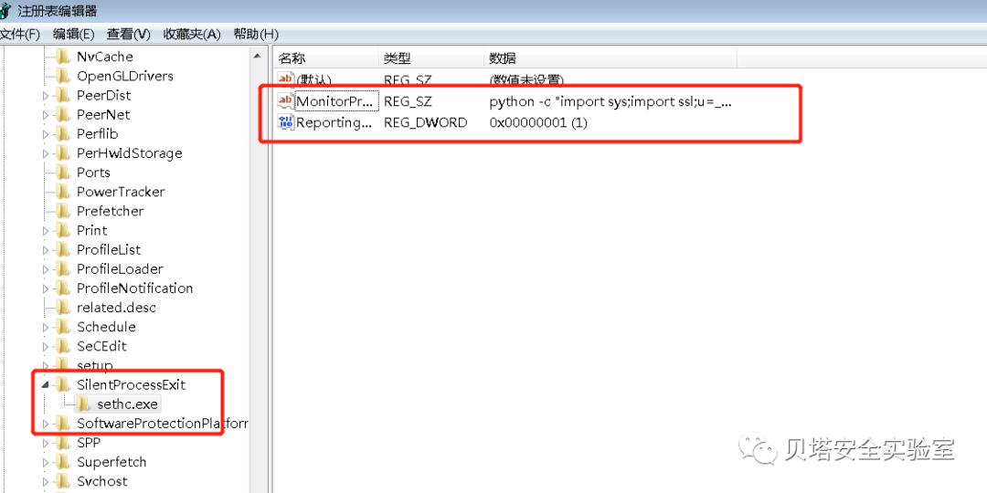 与上文对比,不一样的“映像劫持”后门是怎样的呢?0x03中所讲述的传统“映像劫持”后门是修改IFEO中的“debugger”键值,用来替换原有程序的执行。而不一样的“映像劫持”后门,实现的效果是:程序A静默退出结束后,会执行程序B。