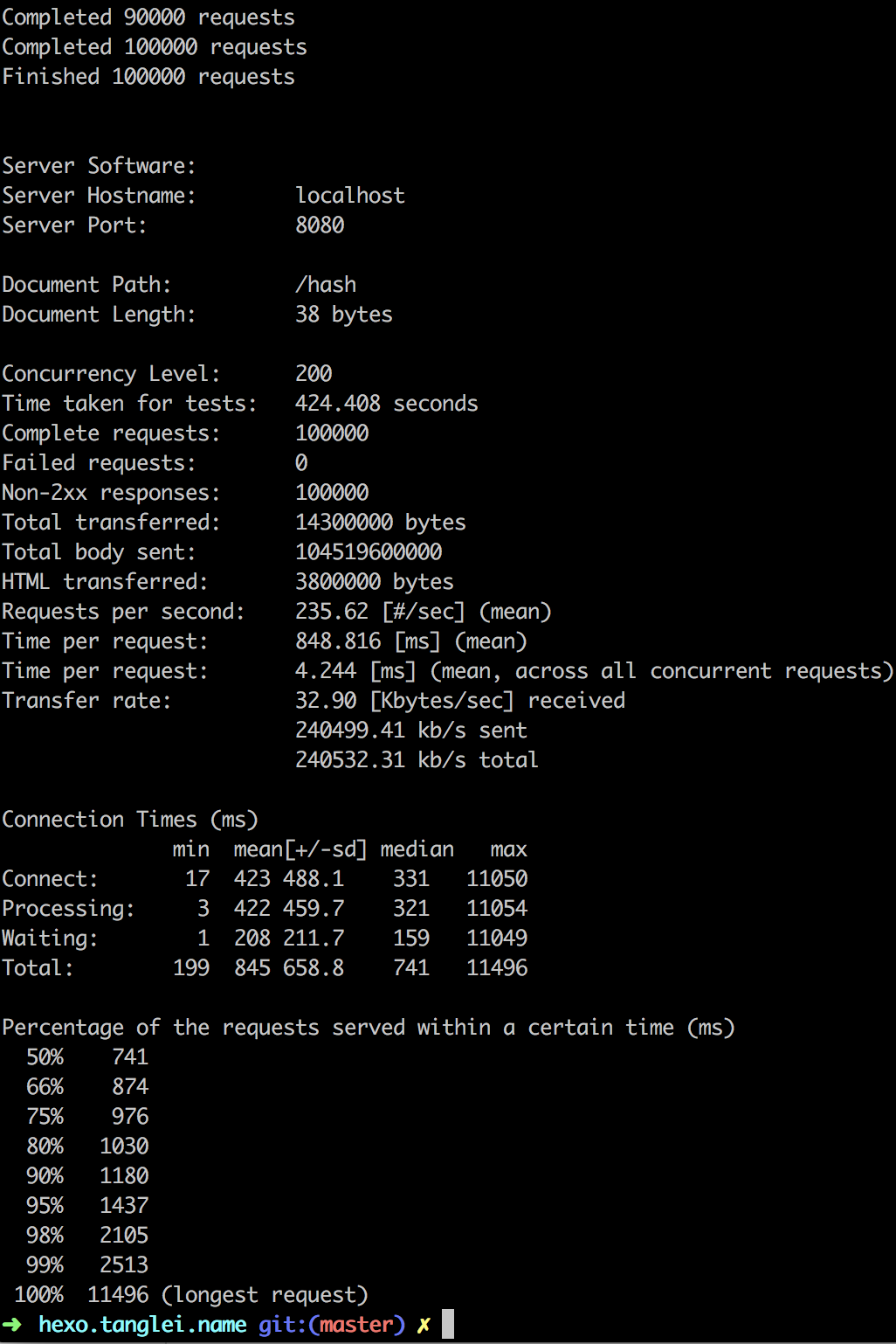 ab -c 200 -n 100000 -p req.txt 'localhost:8080/hash'