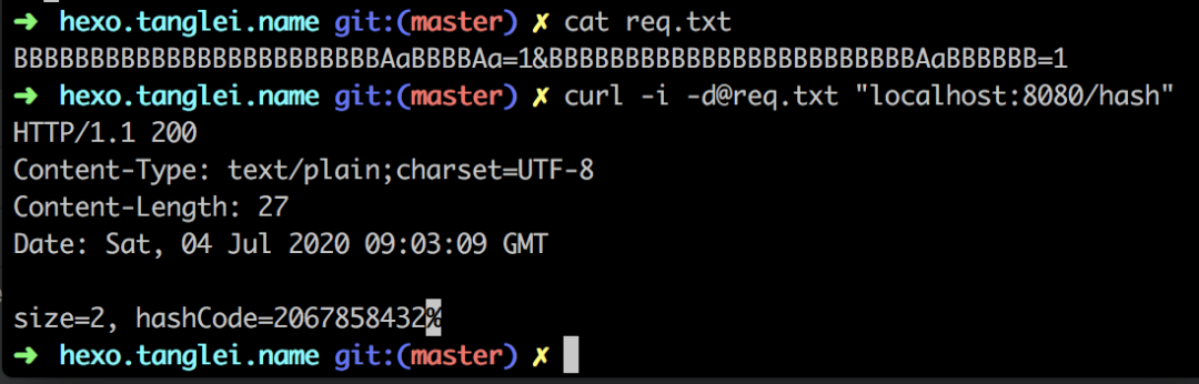具体生成过程本文不详述了,感兴趣可以看看 StackOverflow 上的这篇文章 Application vulnerability due to Non Random Hash Functions[3],或者参考耗子叔的这篇 Hash Collision DoS 问题[4]。