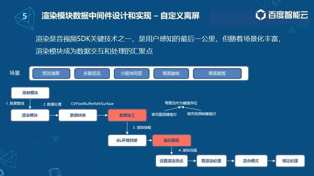 为什么说渲染是音视频SDK关键技术之一?从整体技术链路的角度来说,渲染模块实际上是用户最能感知到的一个模块。在一些复杂的场景下,渲染模块也承载了一些数据的交互和处理。因此渲染模块所包括的处理已经不再只是渲染,可能会涉及到某些场景的特殊需求,例如清屏等等:多人会议的时候,相当于一个关闭画面的效果;如多路混流,前面提到的RTC混流方案等等,渲染模块也可以作为其中的一个技术方案。也包括像小程序,尤其是一些小程序、安卓的同层设计方案,渲染方案等等。