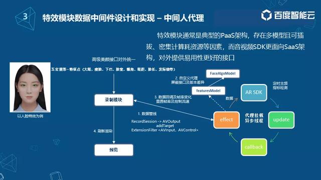 这里我们提供了一个概念:首先在调用能力的时候,不直接去调用,而是把这些能力做进行抽象、封装,然后这些封装的模型,用来关联后面的一些不同的算法。因为别人在用SDK的时候,不一定按照你所有东西来集成,可能只使用其中部分能力,这样就有可能会导致一些特效的SDK存在版本不一致。如果没有这个代理层,当出现版本不一致的情况,对于上层来说可能就会出现大量接口的调整和修改,会比较耗时耗力。不过我们做代理的话,可能就给屏蔽上层接口的稳定性,然后通过我们的模型跟一些抽象对象,可以去驱动不同的AR模块的版本。