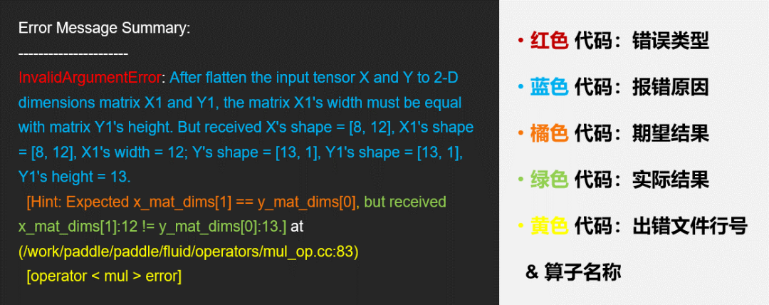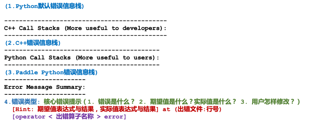 首先我们了解下目前飞桨最新版本报错信息的结构,如下图: