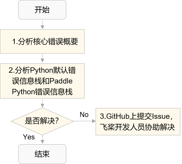 当使用飞桨遇到报错提示时,定位流程是啥样子的呢?请对应上文提到的飞桨报错信息结构图,按如下流程逐步分析。
