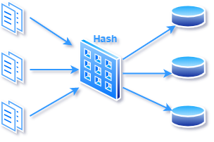 在分布式集群缓存的负载均衡实现中,比如 memcached 缓存集群,需要把缓存数据的 key 利用哈希函数散列,这样缓存数据能够均匀分布到各个分布式存储节点上,要实现这样的负载均衡一般可以用哈希算法来实现。下图演示了这一分布式存储过程: