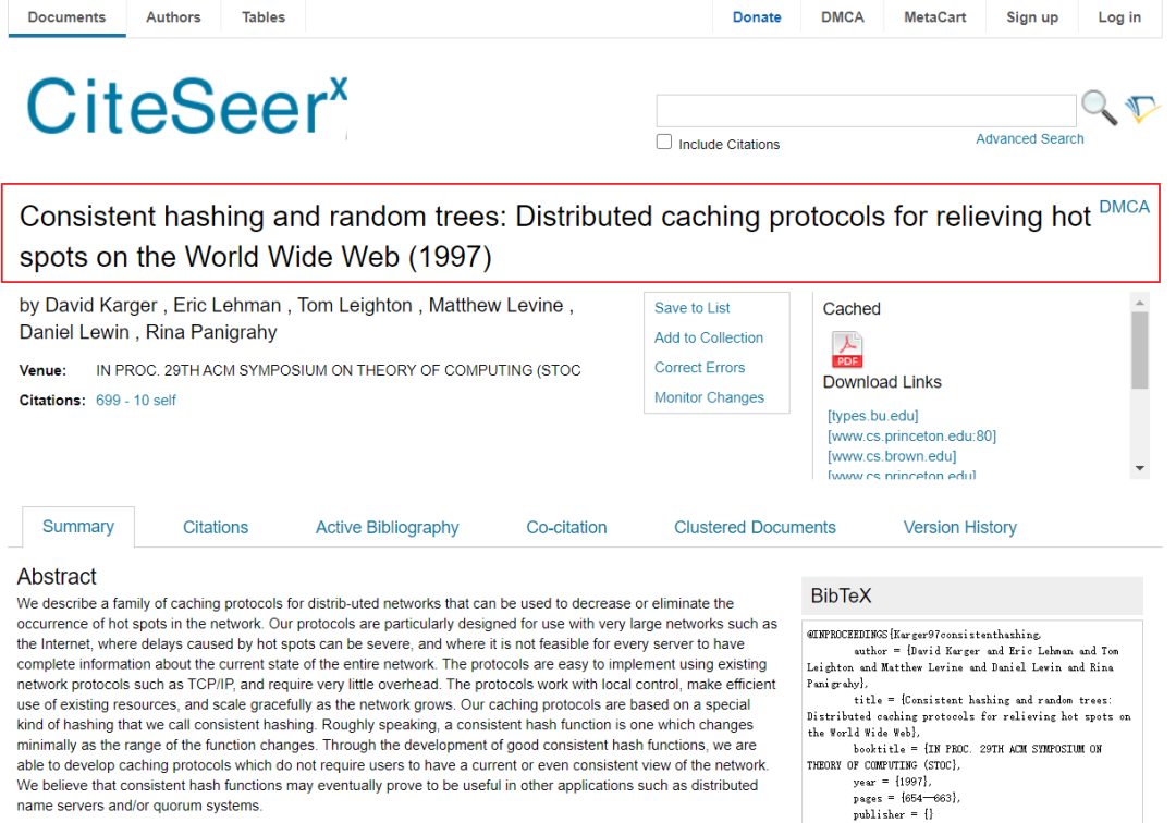 这篇描述一致性哈希的论文发表于1997年,阅读无障碍的同学可以直接看看大佬的论文理解更深刻,附上论文下载链接:http://citeseerx.ist.psu.edu/viewdoc/summary?doi=10.1.1.147.1879