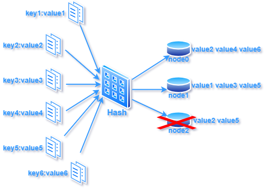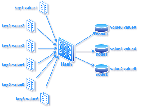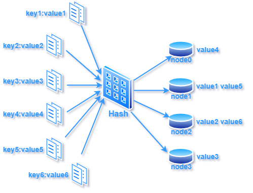 哈希计算公式:key % 节点总数 = Hash节点下标