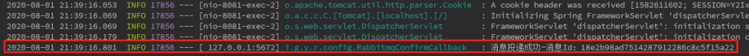 logger.info("消息投递成功~消息Id:{}", correlationData.getId());