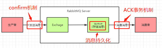 针对以上三种场景,RabbitMQ提供了三种解决的方式,分别是消息持久化,confirm机制,ACK事务机制。
